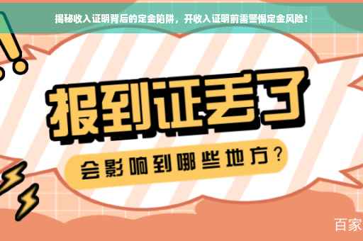揭秘收入证明背后的定金陷阱。在办理收入证明时,一些机构或个人要求先交定金,这可能是一种陷阱。对此,需要谨慎对待。不要轻易交付定金,应先了解相关流程和规定,避免陷入陷阱。在办理收入证明时,务必选择正规渠道,避免不必要的风险。?⚠️定金交付需谨慎,以免遭受损失。