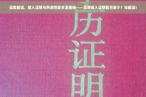摘要:,,本文将深度解读收入证明与购房贷款的关系,探讨买房收入证明能开多少以及能开多少年的问题。文章将围绕收入证明在购房贷款中的重要性,解析银行对收入证明的具体要求,同时介绍收入证明的真实性和有效性对贷款额度的影响。帮助购房者更好地理解收入证明与购房贷款之间的联系,顺利办理购房贷款。