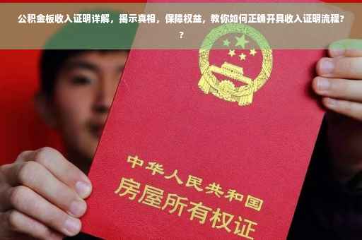 摘要:公积金板的收入证明是证明个人收入状况的重要文件,揭示真相并保障个人权益。开具收入证明需要遵循一定流程,包括准备相关材料、填写申请表格、提交至公积金管理中心等步骤。了解正确开具收入证明的方法,有助于确保个人权益不受侵犯,同时也有助于顺利办理公积金相关事宜。