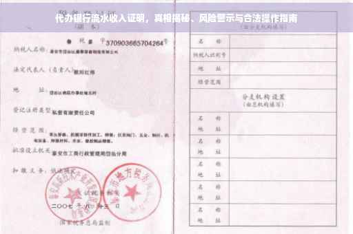 随着社会的快速发展,银行业务日益繁忙,一些人可能因为各种原因需要代办银行流水收入证明,在这个过程中,隐藏着许多不为人知的真相和风险,本文将详细解析代办银行流水收入证明的背后真相、潜在风险,并为大家提供合法操作的指南,以帮助大家顺利办理相关业务。