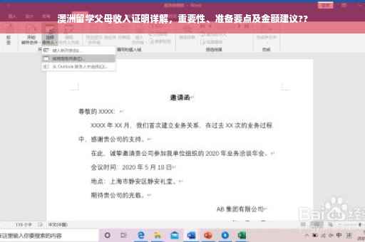 随着国际化教育的不断发展,越来越多的中国学生选择前往澳大利亚留学,在申请留学的过程中,父母收入证明成为了重要的申请材料之一,一份合适的父母收入证明不仅可以增加学生签证申请的成功率,还有助于申请奖学金、助学金等资助项目,本文将详细介绍澳洲留学中父母收入证明的重要性及准备要点。