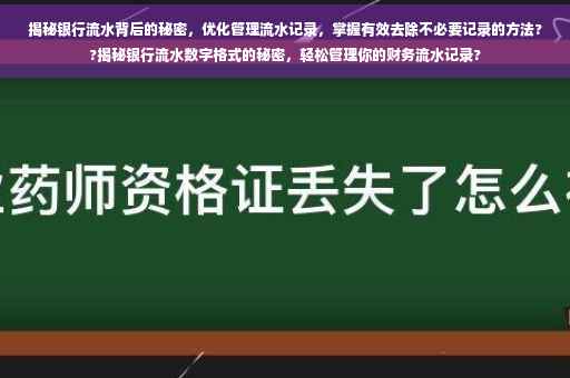 摘要:银行流水记录反映个人或企业的经济活动,其背后隐藏着许多细节和不必要的记录。通过有效管理和筛选,可以揭示其背后的秘密并去除不必要的流水记录。直接去掉银行流水数字格式并不现实,建议通过银行渠道合法合规地查询和管理流水记录,确保安全和准确性。对于隐私保护,应谨慎处理银行流水信息,避免泄露风险。