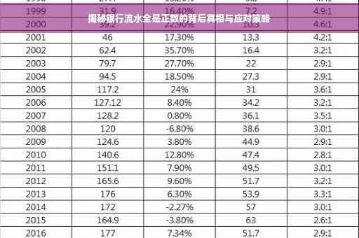随着金融行业的蓬勃发展,个人财务管理逐渐受到广泛关注,银行流水作为个人财务记录的重要组成部分,对于申请金融产品如贷款和信用卡具有关键作用,很多人在查看自己的银行流水时,发现全是正数,对此感到困惑,本文旨在深入探讨银行流水全为正数的背后真相,揭示其中不为人知的秘密,并解析潜在的风险。