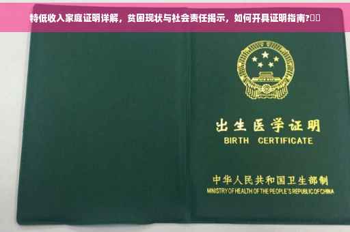 摘要:特低收入家庭证明是对贫困家庭现状的揭示,体现社会责任。申请该证明需了解相关流程,包括了解政策、准备材料、填写申请表格等步骤。证明的开具有助于贫困家庭获得社会支持和援助,改善生活状况。社会应关注贫困家庭,共同承担帮助他们的责任。