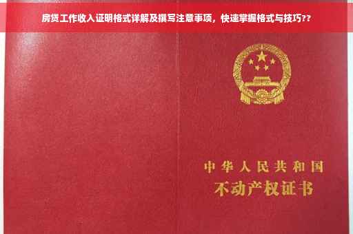 随着房地产市场的繁荣,购房已成为众多人的重要生活事件,在申请房贷的过程中,收入证明是评估申请人还款能力的重要依据,其格式与内容的准确性直接关系到贷款申请的成败,本文将详细介绍房贷工作收入证明的重要性、格式细节及注意事项,以帮助申请人顺利办理房贷手续。