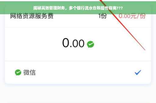 通过建立多个银行流水台账并有效管理,你可以更好地掌握自己的财务状况、规划资金使用、控制支出并实现财务目标,希望本文能够帮助你更好地管理个人财务,实现财务自由,在实际操作过程中,你可能需要根据自己的实际情况进行调整和优化,找到最适合自己的财务管理方法,记得关注财务安全,保护个人隐私和账户安全。