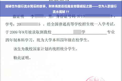 华为公司以其卓越的技术实力和国际化的经营策略,已然成为全球知名企业巨头,透过其银行流水这一财务指标,我们可以窥探到华为商业帝国崛起的背后故事。
