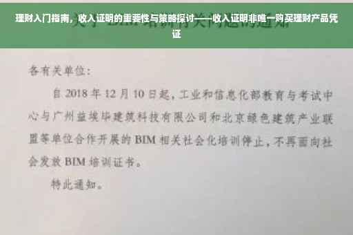 随着经济的发展和个人财务观念的普及,越来越多的人开始关注理财,在理财的道路上,许多新手常常忽视收入证明的重要性,收入证明在理财过程中扮演着至关重要的角色,本文将探讨收入证明的意义、作用及其在理财决策中的应用,帮助读者更好地理解理财之道。