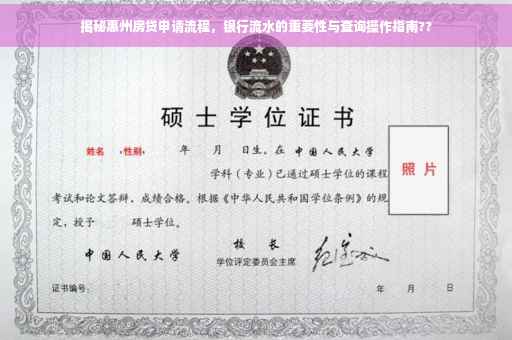 随着房地产市场的繁荣,越来越多的人选择在惠州这座美丽的城市安居乐业,对于购房者来说,房贷无疑是实现购房梦想的重要途径,在申请房贷的过程中,银行流水作为评估个人还款能力的重要依据,其准确性和完整性显得尤为重要,本文将详细介绍惠州房贷申请中银行流水的作用、注意事项以及操作指南,帮助广大购房者顺利获得房贷。