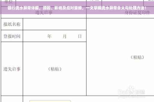 银行流水异常可能源于多种原因,对个人和企业的金融活动产生深远影响,个人和企业应高度重视,采取相应策略应对,确保自身权益。
