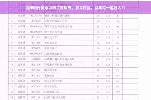 在现代社会,随着经济的发展和金融体系的完善,银行流水成为了个人经济生活的重要记录,工资作为主要的收入来源,更是银行流水中的重要组成部分,本文将详细介绍银行流水中的工资细节,帮助大家更好地了解自己的财务状况。