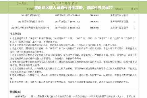 摘要:本文将全面解析成都地区代开收入证明的相关事宜,包括代办收入证明的流程、注意事项、所需材料等内容。帮助读者了解并顺利办理收入证明,解决相关需求。??(成都地区提供代办收入证明服务,详细流程解析,便捷高效。)