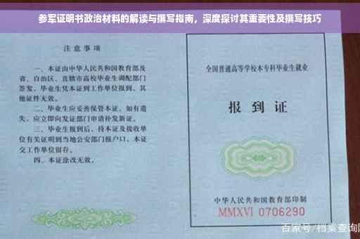 摘要:本文将详细解读参军证明书政治材料的构成与重要性,阐述其作为参军入伍必要文件的价值。文章将指导读者如何撰写政治材料,强调材料的真实性、准确性和完整性。通过本文,读者将了解参军证明书政治材料在入伍过程中的关键作用,以及撰写时需注意的关键要点。