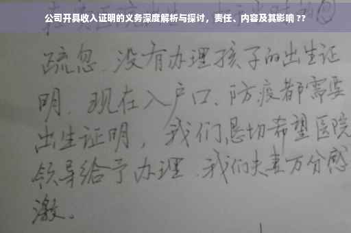 摘要:本文将探讨公司开具收入证明的义务。内容包括公司开具收入证明的责任与必要性,以及具体义务内容。通过解析公司开具收入证明的法律要求和实际操作中的注意事项,帮助企业和个人了解并遵守相关规定,保障合法权益。