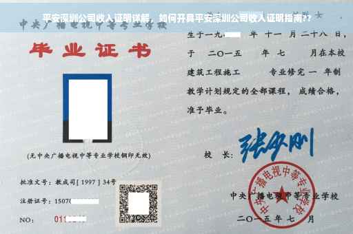 摘要:本文将详细介绍平安深圳公司的收入证明及其开具流程。内容包括收入证明的概念、用途、所需材料、办理步骤等。通过本文,读者可以了解到如何正确开具平安深圳公司的收入证明,以便在需要时提供有效的证明文件。摘要字数控制在100-200字之间。