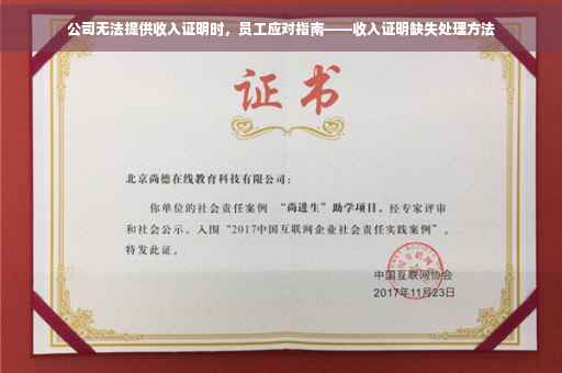 面对公司无法出具收入证明的情况,员工需要了解公司政策和法律法规,与公司沟通并寻求其他证明材料,公司也应从内部制度、员工合同签订管理等方面着手解决问题,提高员工的法律意识和寻求第三方机构的帮助也是解决该问题的有效途径。