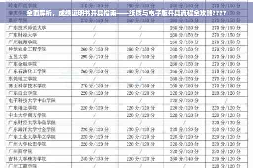 摘要:本文将指导您如何开具成绩证明书,包括纸质版和电子版。您需要前往所在学校教务处或学籍管理部门申请开具成绩证明。准备好相关证件,如学生证、身份证等。提交申请后,学校会核实您的成绩信息并出具证明。若需电子版成绩证明,可在学校官网或相关平台下载电子版成绩证明表格,填写完毕后提交至相关部门审核盖章。确保信息准确无误,注意保密性。本文为您提供了详细的步骤和注意事项,方便您快速开具成绩证明书。