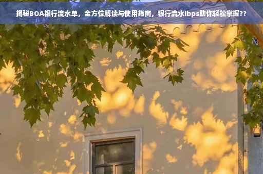 摘要:本文将揭秘BOA银行流水单,全方位解读其内容和功能,并提供使用指南。文章将介绍如何通过银行流水单中的IBPS系统查询和管理资金流动情况。通过阅读本文,您将了解如何正确理解和使用银行流水单,以便更好地掌握个人财务状况。