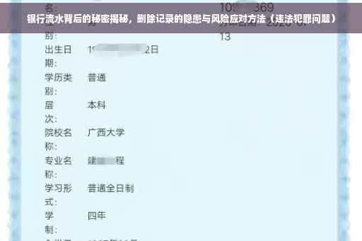 摘要:,,本文探讨了银行流水背后的秘密,并指出删除银行流水记录是不合理且可能涉及违法犯罪的行为。提醒广大公众,任何试图删除银行流水记录的行为都是违法的,不应尝试寻找相关软件进行操作。银行流水作为重要的财务记录,对于个人和企业都是重要的财务凭证,应该妥善保存。呼吁公众保持警惕,遵守法律法规,正确使用银行服务。