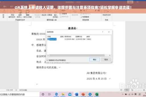 随着数字化时代的快速发展,越来越多的企业采用办公自动化(OA)系统来管理日常运营,在办理贷款、信用卡、签证等事务时,收入证明是不可或缺的重要材料,在OA系统上申请收入证明已成为许多职场人士的日常操作,本文将详细介绍OA系统上申请收入证明的具体步骤及注意事项,帮助大家高效、准确地完成申请。