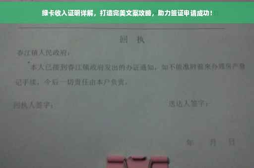 随着全球化的推进,移民海外成为越来越多人的选择,追求更好的生活和发展机会,在移民的重要步骤中,绿卡申请过程的收入证明环节尤为关键,本文将为您详细介绍绿卡收入证明的概念、作用,以及撰写一份出色绿卡收入证明文案的方法,助您成功迈出移民的重要一步。