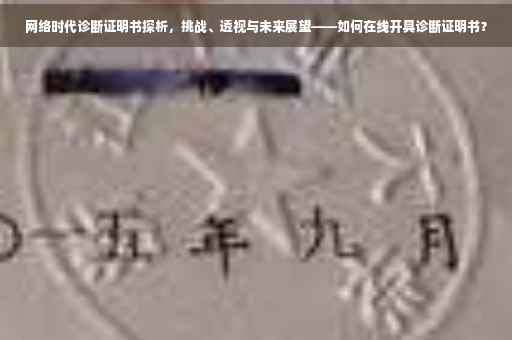 随着互联网技术的飞速发展,网络诊断证明书逐渐成为医疗领域的一种新型服务模式,通过网络平台,患者能够方便快捷地获取医生的专业诊断意见,这无疑大大提高了医疗服务的效率和可及性,网络诊断证明书在普及过程中也面临着诸多挑战和问题,本文将深入探讨网络诊断证明书的现状、挑战,以及未来的发展趋势。