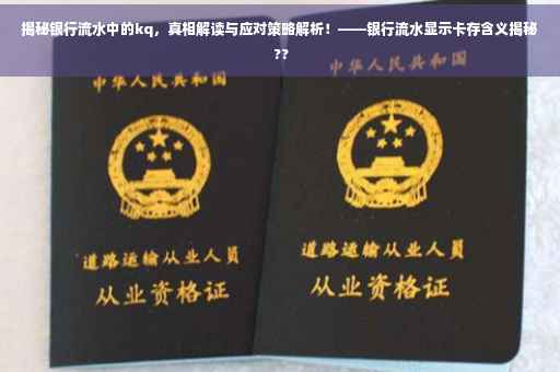 摘要:银行流水显示kq,通常指的是银行卡存款记录。深入了解其背后的真相,发现kq可能代表存款交易的类型或标识。面对这种情况,建议用户仔细核对流水记录,确认资金来源与交易细节。若存在疑问,应及时联系银行客服查询交易明细,确保资金安全。加强账户安全意识,保护个人信息和交易密码,避免不必要的风险。
