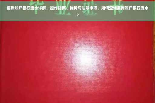摘要:本文将详细介绍离岸账户银行流水的操作、优势和注意事项。通过本文,您将了解如何查询离岸账户银行流水,包括其操作方法和流程。本文还将讨论离岸账户银行流水的优势,如便于资金管理、提高收款效率等,同时也提醒注意事项,如防范风险、保护账户安全等。阅读本文,有助于您更好地理解和使用离岸账户银行流水。