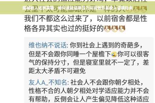 在当前社会,随着就业竞争的加剧和生活成本的上升,越来越多的人开始关注自己的收入状况,而在某些特定情况下,我们需要提供收入证明来证实自己的经济实力,很多时候,我们却陷入了繁琐的收入证明过程中,耗费了大量的时间和精力,本文将探讨如何减少收入证明过程中的压力,揭示背后的真相。