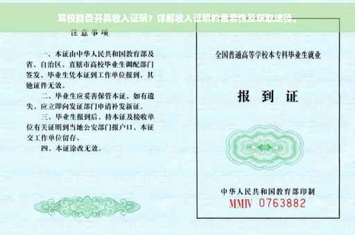是对于“驾校是否能开收入证明”这一问题的详细解答,希望能对大家有所帮助,在现代社会,了解各种证明的作用及获取途径,对于个人的生活和发展具有重要意义,建议大家在生活中多了解相关法规和政策,以便在遇到问题时能够迅速找到解决方案。