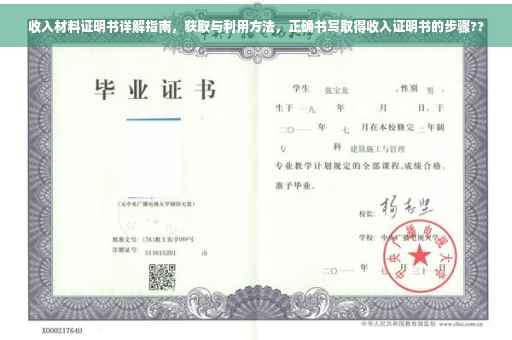 摘要:本文将详细介绍收入材料证明书的获取流程和利用方法。内容包括如何准备申请、提交相关材料、填写申请表格等步骤,以及如何利用收入材料证明书证明个人经济状况,助力贷款申请、租房等场合。本文旨在帮助读者顺利获取收入材料证明书并妥善利用,避免因操作不当而导致的不必要的麻烦。