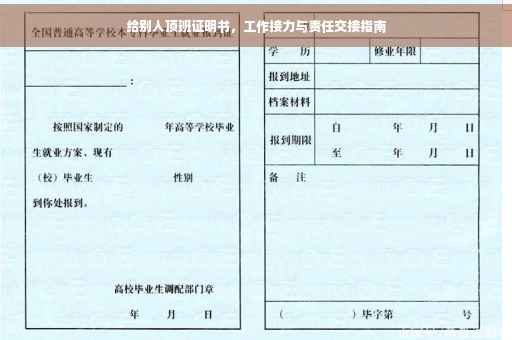 随着社会的快速发展和工作节奏的日益加快,顶班现象在我们的日常生活中愈发常见,顶班,意味着在特定情况下为他人暂时接替工作岗位,承担起相应的责任和任务,在这个过程中,一份顶班证明书显得尤为关键,本文将围绕给别人顶班证明书这一主题展开,探讨顶班现象的背景、原因,以及顶班证明书的重要性,同时分享撰写顶班证明书的注意事项和技巧。