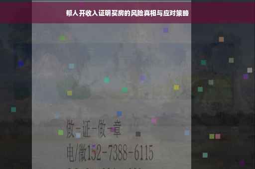 随着房价的不断上涨,购房成为了许多人生活中的重要事件,在这个过程中,收入证明成为了购房者申请房贷的必要材料之一,一些人可能会遇到需要开具收入证明的情况,甚至可能需要找人帮忙开具收入证明,本文将探讨帮人开收入证明买房的真相、风险及应对之策。
