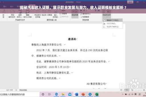 随着汽车行业的迅猛崛起,投身其中的人越来越多,对于希望在汽车行业内立足的人来说,了解如何证明自己的收入与职业发展潜力至关重要,本文将深入解析汽车公司的收入证明内容,并为您揭示如何有效利用这一证明,为您的职业发展添砖加瓦。