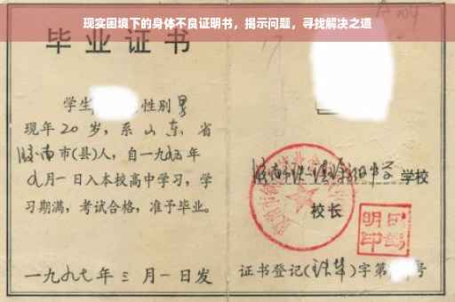 摘要:本证明书旨在揭示个人身体不好的现实困境,并寻求解决之道。当前健康状况不佳,急需关注与改善。本证明书呼吁社会各界重视健康问题,共同为改善人们的健康状况而努力。希望通过医疗证明、健康咨询等方式,寻求有效的解决方案,恢复身体健康。身体不好证明书不仅是个人需求,更是社会关注的重要议题。