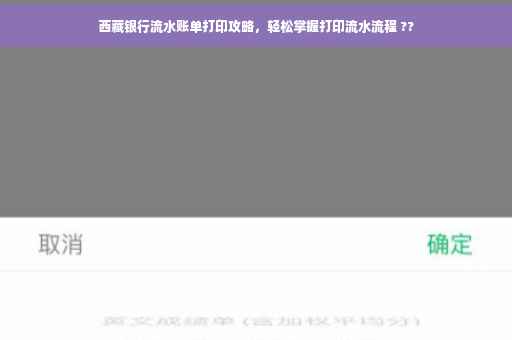 摘要:本文将介绍西藏银行流水账单打印的攻略和流程。通过简洁明了的步骤,让读者了解如何轻松打印西藏银行的流水账单。文章将涵盖从登录银行官网、进入账户查询页面、选择打印时间范围到完成打印等详细步骤,帮助读者顺利完成流水账单的打印。