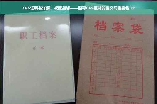 本文详细解析了CFS证明书的意义和重要性,揭示其权威性。CFS证书是一个专业领域的证明文件,代表着持有人具备相关领域的专业能力和资质。文章通过深入解读CFS证书的内容和作用,帮助读者了解这一证书的实际意义,为需要了解CFS证书的人群提供了有价值的参考信息。