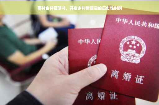 摘要:,,本文记述了两村合并的历史性时刻,介绍了如何撰写两村合并证明书。这一重要文件标志着两个村庄的合并,开启了乡村发展的新篇章。文章简要阐述了合并的背景、目的和重要性,并提供了合并证明书的写作指南,包括关键信息和格式要求。这一合并不仅是两村发展的里程碑,也为未来乡村振兴提供了新的机遇和挑战。