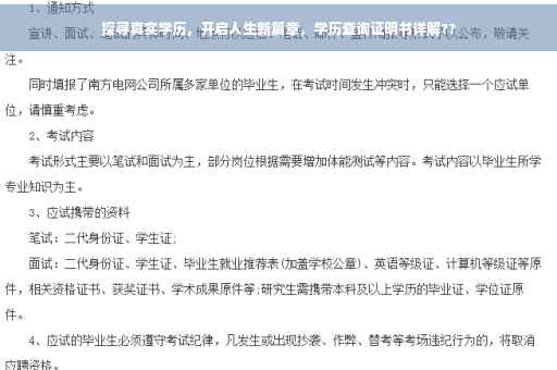 随着社会的不断进步和竞争的日益激烈,学历在人们职业生涯中的重要性愈发凸显,越来越多的人开始重视学历,并将其作为衡量个人能力和价值的重要标准之一,随着学历市场的不断发展,学历真伪问题也逐渐浮出水面,本文将为大家介绍学历查询证明书的相关知识,帮助大家探寻真实学历,揭开人生新篇章。