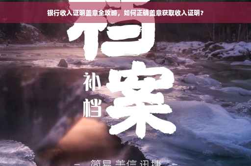 办理银行收入证明时,请务必了解相关流程和注意事项,确保顺利办理,本文详细介绍了银行收入证明的盖章流程、注意事项及常见问题解答,希望能为大家提供帮助,如有更多疑问,请咨询所在银行工作人员,只有充分了解银行收入证明的盖章流程和相关规定,我们才能更加顺利地完成这项任务,希望本文能为大家带来实用的帮助,让大家在办理银行收入证明时少走弯路。