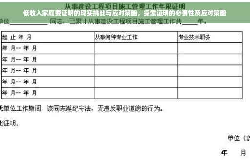 当今社会,低收入家庭面临着严峻的生活挑战,随着生活成本的持续上升,他们在教育、医疗、住房等方面感受到了越来越大的压力,为了获得政府的补贴、社会的援助或争取相关福利,他们通常需要证明自己的经济状况,这一证明过程并非一帆风顺,涉及到许多问题和困惑,本文将围绕这一主题展开探讨,并提出相应的解决方案。