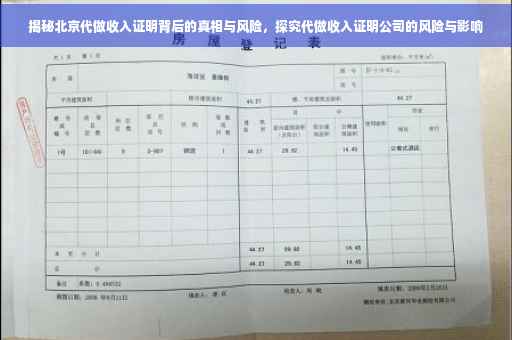 近年来,随着社会的快速发展,一些人为了各种需求选择通过代做收入证明的方式获取所谓的“便利”,特别是在北京这样的大都市,这种现象尤为突出,本文将深入探讨北京代做收入证明背后的真相与风险,揭示这一行为的真实面目,并提醒广大市民谨慎对待。
