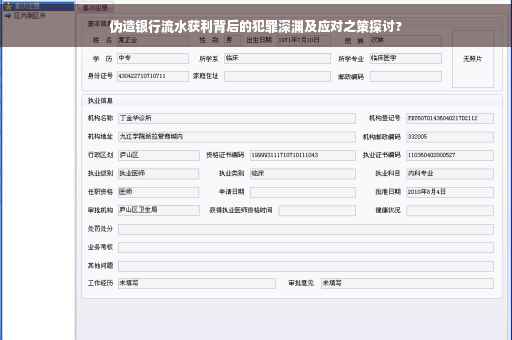 随着现代社会经济的发展,银行业务已成为人们日常生活中不可或缺的一部分,一些人为了谋取不正当利益,不惜铤而走险,走上了伪造银行流水的犯罪道路,本文将深入探讨伪造银行流水获利的危害、犯罪手段的揭秘以及法律后果的严重性,以唤起广大民众对此类犯罪行为的警惕。