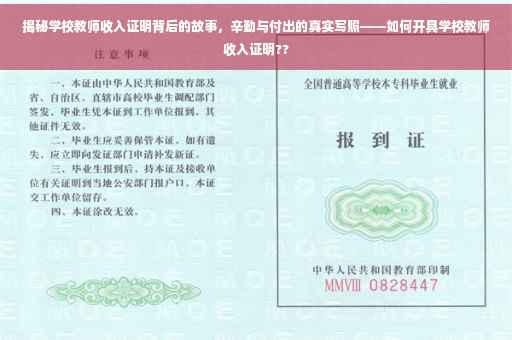 摘要:本文将探讨学校教师收入证明背后的故事,揭示这一份证明背后教师们所付出的辛勤与努力。文章将介绍如何开具学校教师的收入证明,包括相关的流程和注意事项,以展现教师职业的不易与付出。希望通过此文,更多人能理解教师职业的价值与意义。