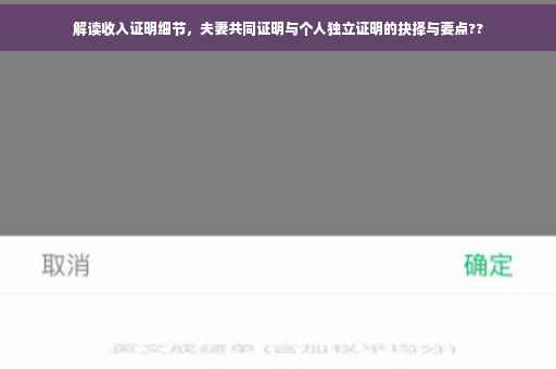 在现代社会,随着经济的发展和人们收入水平的提高,收入证明在各个领域的应用越来越广泛,无论是贷款购房、申请信用卡、子女入学,还是职场竞争,收入证明都扮演着重要的角色,关于收入证明是开夫妻共同证明还是个人独立证明的问题,很多人并不清楚,本文将详细解读其中的细节与要点,帮助大家更好地理解与应用。
