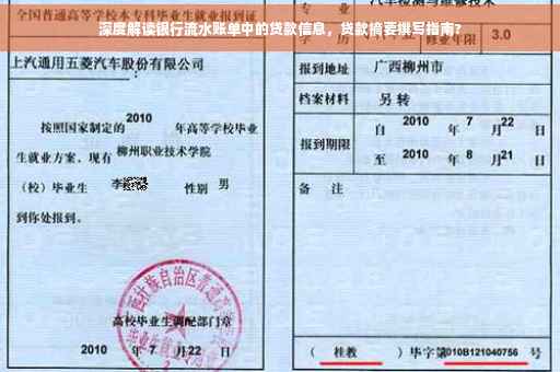 本文通过深度解读银行流水账单中的贷款信息,帮助读者了解如何利用银行流水账单进行个人财务管理,在申请贷款时,申请人应关注银行流水账单中的贷款发放、还款记录等信息,做好财务资料的整理,选择合适的贷款产品,并提供其他资料辅助申请,申请人还需注意保护个人信息、谨慎选择贷款机构、合理使用贷款资金等方面的问题,希望本文能为读者在个人财务管理和贷款申请方面提供有益的参考。