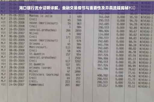 随着金融行业的快速发展,银行流水证明在日常生活及经济活动中的地位日益重要,海口银行作为一家具有深厚历史底蕴的金融机构,其流水证明的作用及意义不容忽视,本文将详细解读海口银行流水证明的内容,剖析其背后的金融交易细节,以及其在个人和企业生活中的重要性。