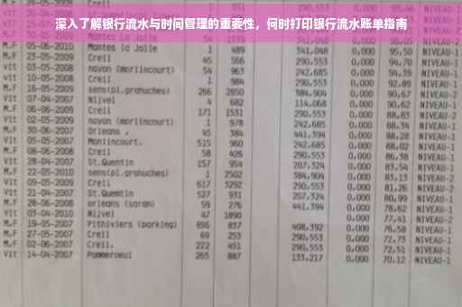摘要:本文深入探讨了何时打印银行流水的重要性。文章详细解释了在不同情况下,如贷款申请、财务审计、个人财务管理等,需要打印银行流水的时机。强调了时间管理在打印银行流水过程中的关键作用,帮助读者更好地了解自己的财务状况,避免不必要的麻烦。阅读本文,让你明智地管理银行流水账单,把握关键时间点。