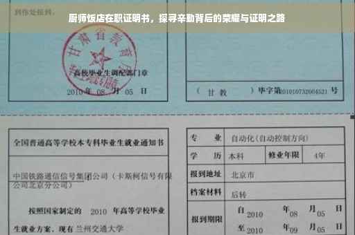 在丰富多彩的餐饮行业中,厨师们以他们的烹饪才华和辛勤努力,赢得了广大食客的喜爱和尊重,本文旨在为您呈现一位杰出厨师的饭店在职证明及其职业成就,带您走进他们的世界,感受他们的辛勤与荣耀。