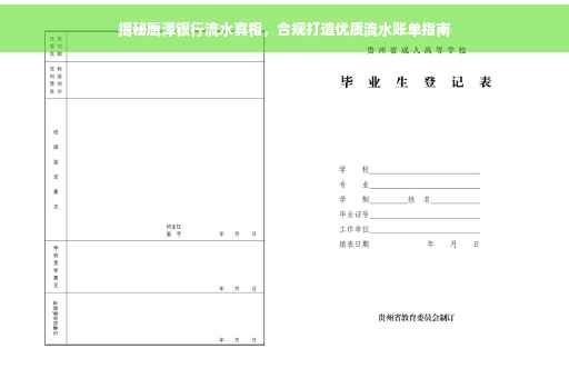 摘要:本文将揭示鹰潭银行流水账单背后的真相,通过合法合规的方式打造优质流水账单。我们将深入探讨银行流水账单的重要性,以及如何合理规划个人或企业的资金流动,以展现健康、真实的财务状况,助力个人和企业获得更好的信贷及金融服务体验。